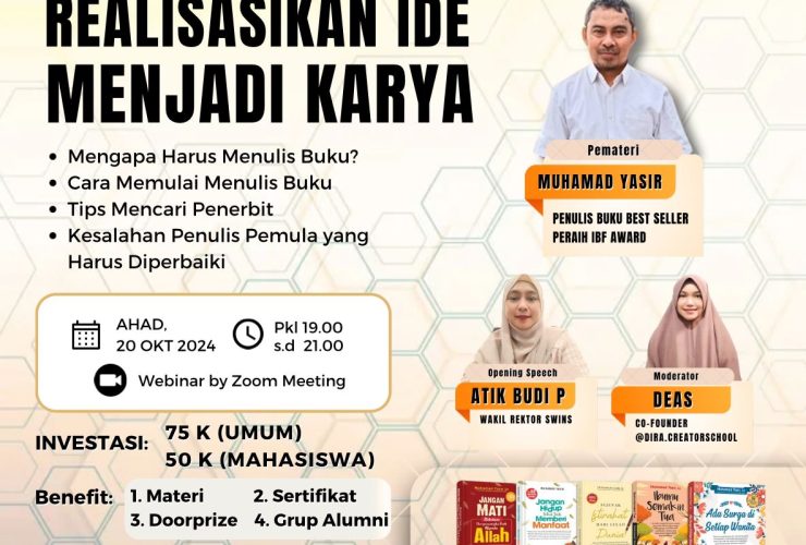 Jakarta, Oktober 2024 – BAKAT Media bersama DIRA kembali menghadirkan program inspiratif bagi para calon penulis. Dalam Workshop Menulis Pemula bertema “Realisasikan Ide Menjadi Karya”, peserta akan dipandu untuk memulai perjalanan menjadi penulis profesional. Workshop ini akan dilaksanakan pada Ahad, ...