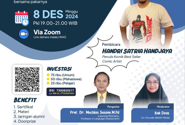 Jakarta, Desember 2024 – Dalam upaya mendukung kreativitas generasi muda dan pecinta komik, BAKAT Media bekerja sama dengan DIRA menyelenggarakan Webinar Literasi: Workshop Menggambar Komik Pemula. Acara ini akan berlangsung pada Minggu, 8 Desember 2024, pukul 19.00–21.00 WIB, secara daring ...